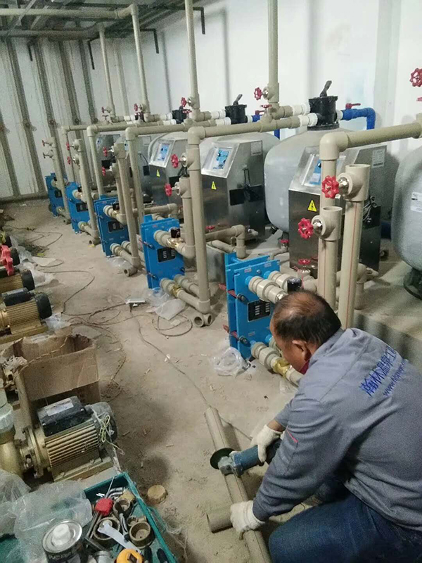 溫泉泳池設(shè)備安裝施工現(xiàn)場