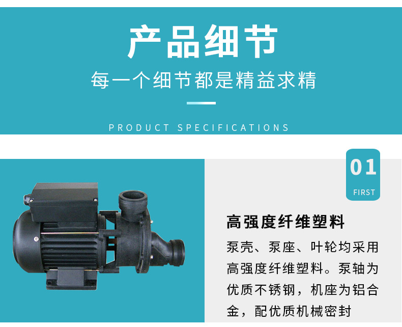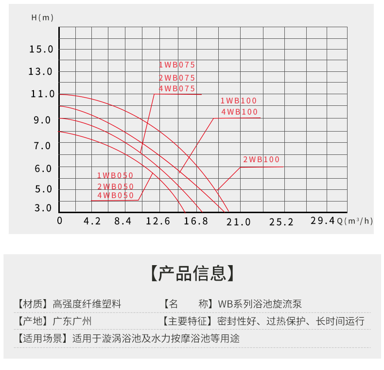 - WB系列浴池旋流泵(沖浪浴缸泵),泵殼、泵座、葉輪均采用高強度纖維塑料。泵軸為優質不銹鋼,機座為鋁合金,配優質機械密封。